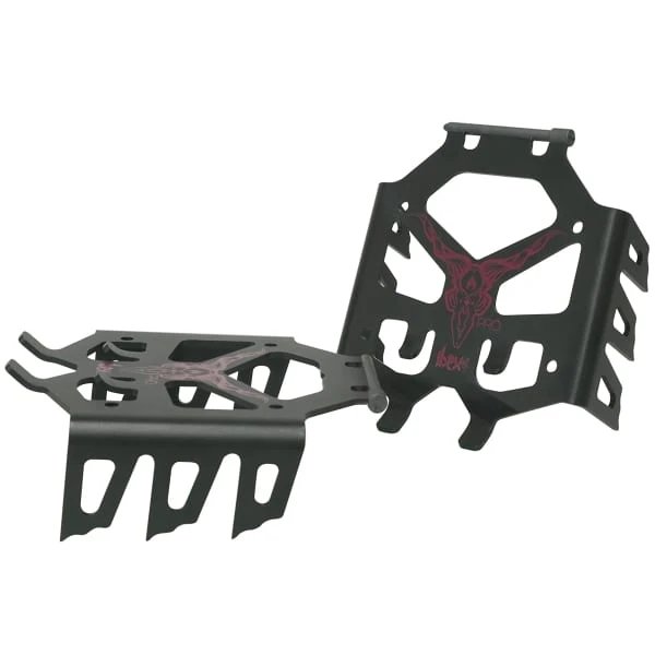 Featuring a lightweight 7075 aluminum construction for maximum strength and minimum weight, this pair of knives installs and removes effortlessly thanks to its sliding design that allows for handling without having to take off the split. Simply slide the cleat sideways and you’re done. The cleat teeth are fully engaged when used with or without the dual position wedge for maximum safety on challenging terrain. In addition, its double-width design features one blade slightly wider than the other, allowing the blades to nest together for easy handling and a smaller footprint. The new ST pin, made from a proprietary thermoplastic molded into the top of the knife, is extremely durable and allows for smooth installation and removal of the knives.